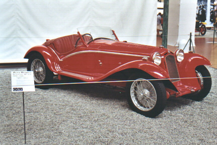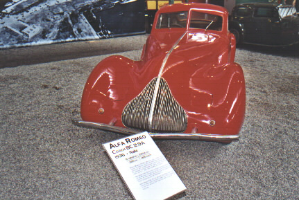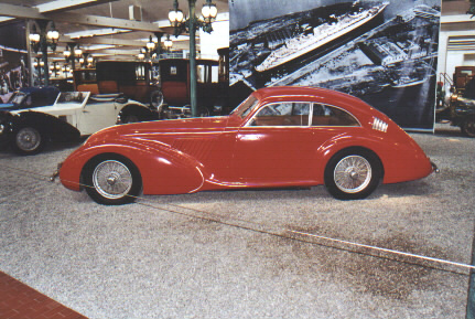 De 1935 à 1939, Alfa fabriqua six 8C2900A destinées à la compétition. Leurs moteurs, dérivés de celui de la monoplace P3 de 1934, développaient 220 CV à 5300 tours/min, grâce à deux compresseurs délivrant une pression de 0.8 Kg/cm2. Leurs poids de 850 Kg leurs permettaient de dépasser les 230 Km/h. D'après le livre italien 'Le vetture Alfa Romeo dal 1910' (véritable bible de l'alfiste), la 8C2900A n'a été carrossée qu'en spider deux places par Touring. Le modèle ci-dessus a certainement été recarrossé en cet élégant coupé quatre places après une honorable carrière sportive.