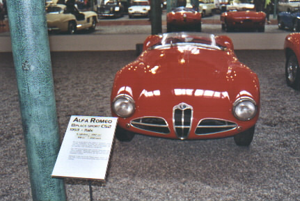 En 1952, Alfa étudia une voiture de course à chassis tubulaire équipée d'un moteur de 1997 cm3 dérivé de celui de la 1900 Super Sprint. Ce moteur développait 158 CV à 6500 tr/min sans compresseur. Le premier chassis fut équipé d'une aérodynamique carrosserie spider qui lui value le surnom de disco volante (soucoupe volante). Seulement 2 autres prototypes furent construits, en 1953, l'un carrossé dans le même style que celui de 1952 mais en coupé, et l'autre en spider à côté plats, destiné aux course de côtes. C'est ce dernier que l'on peut admirer ci-dessus et c'est d'ailleurs le seul des trois C52 à avoir connu quelques compétitions.
