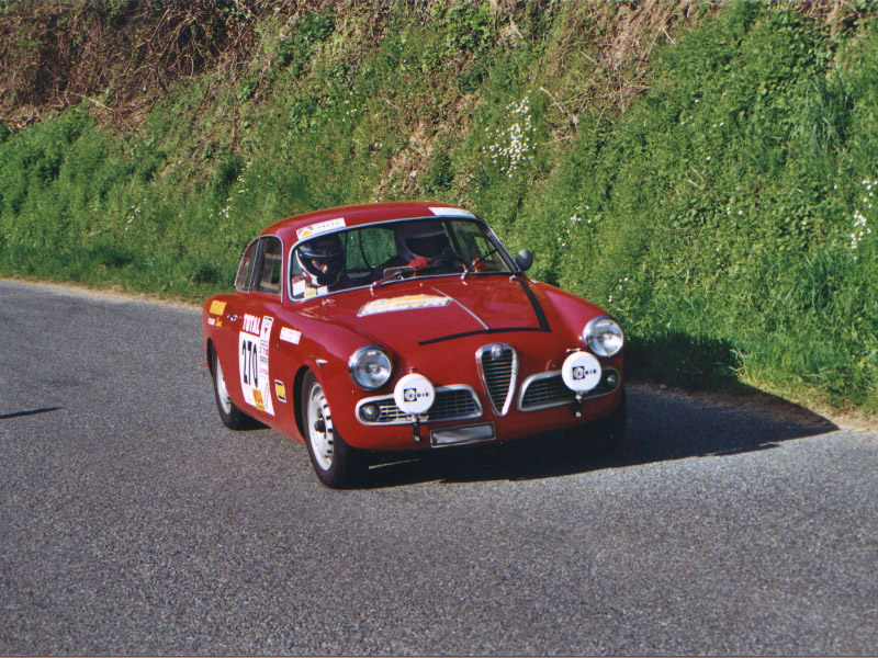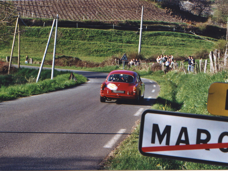 Une superbe giulietta sprint lors du rallye Lyon-Charbonnières 2001.